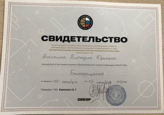2 и 3 ноября на базе Политехнического колледжа прошел семинар по баскетболу. Студенты факультета физической культуры и спорта Рязанов Евгений и Никитина Виктория приняли участие в данном семинаре. Всем участникам были выданы сертификаты, подтверждающие прохождение аттестации в рамках образовательного модуля семинара СИБУР-РФБ .