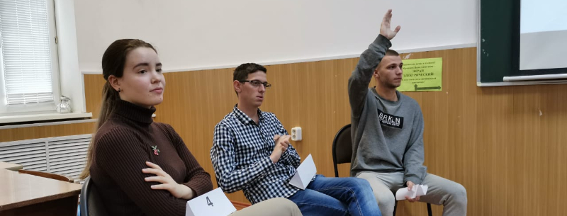 После выступления приглашенного гостя состоялось дискуссионно-тематическое обсуждение в форме интерактивного обмена мнениями "Аквариум", подготовленное студентами 4 курса историко-филологического факультета Шурыгиной Ириной и Грешиловым Евгением.
