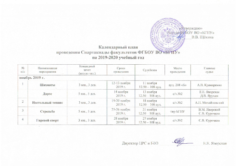 В ноябре 2019 года стартует Спартакиада студентов ФГБОУ ВО «БГПУ».