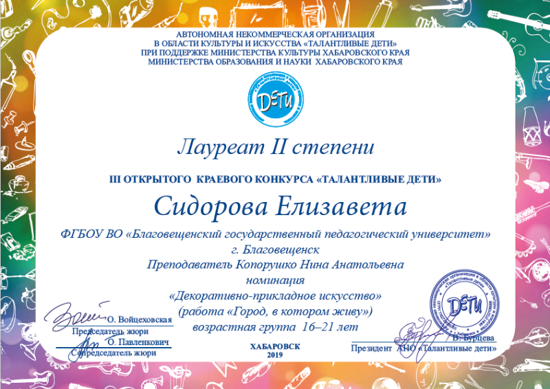 - 2.Сидоренко Елизавета, Лауреат 2 степени