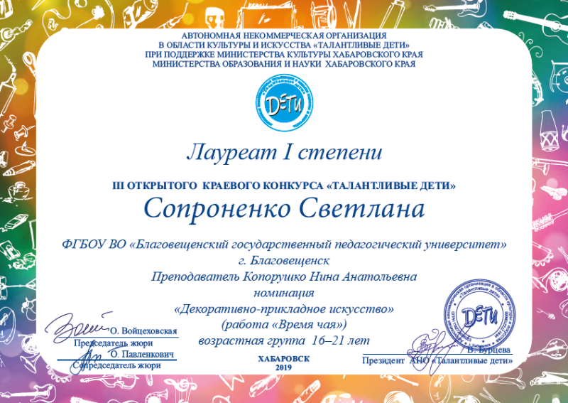 - 1.Сопроненко Светлана, Лауреат 1 степени