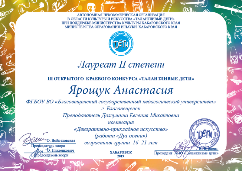 - 3.Ярощук Анастасия, Лауреат 2 степени