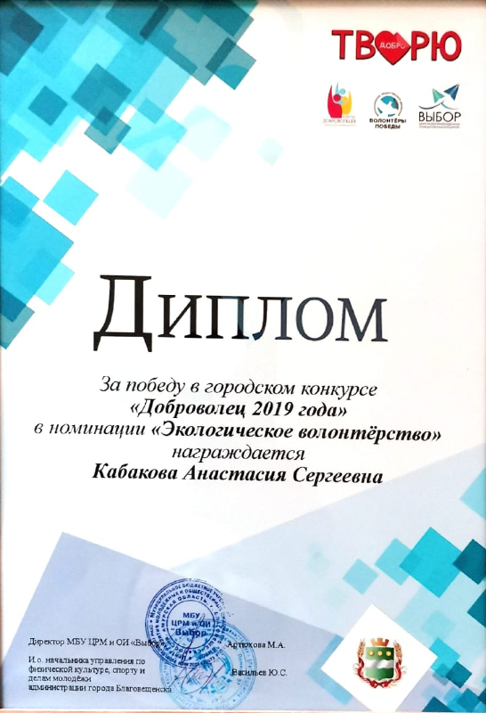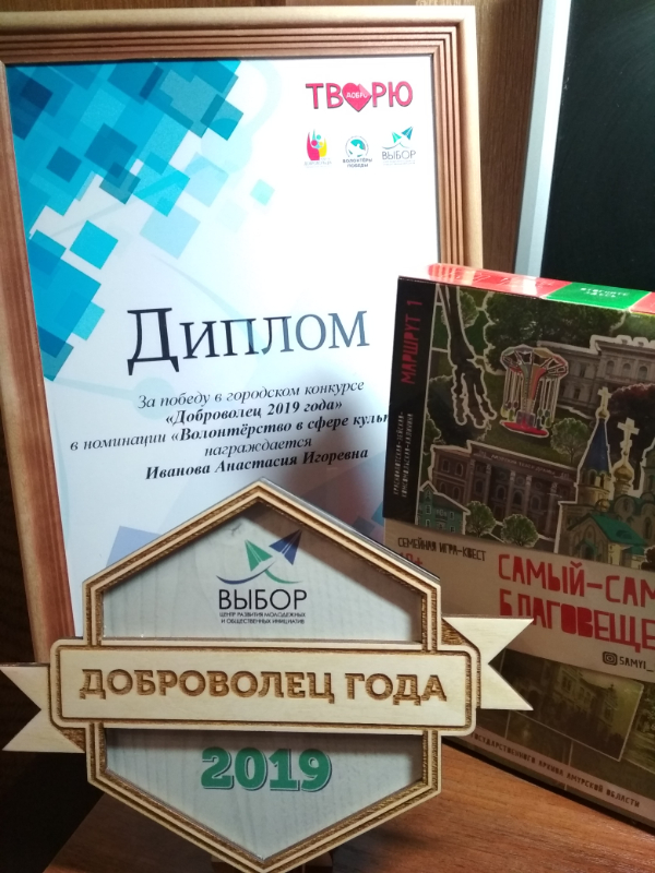 Диплом за победу в городском конкурсе «Доброволец 2019 года» в номинации «Волонтёрство в сфере культуры» заняла студентка 4 курса ИПФ Иванова Анастасия.
