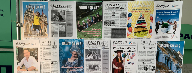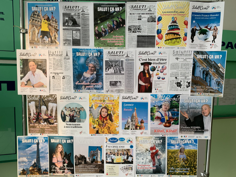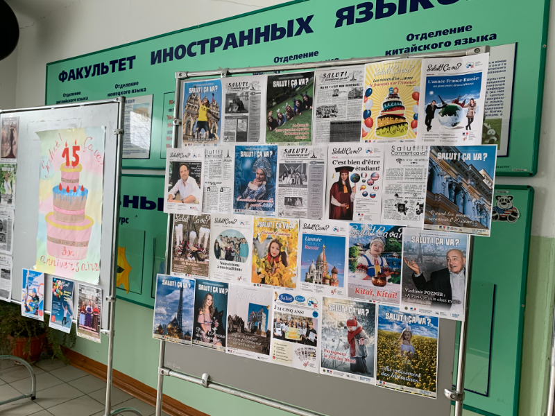 В фойе факультета иностранных языков открылась небольшая выставка в честь пятнадцатилетия «Salut ! Ça va?», франкоязычного журнала БГПУ.