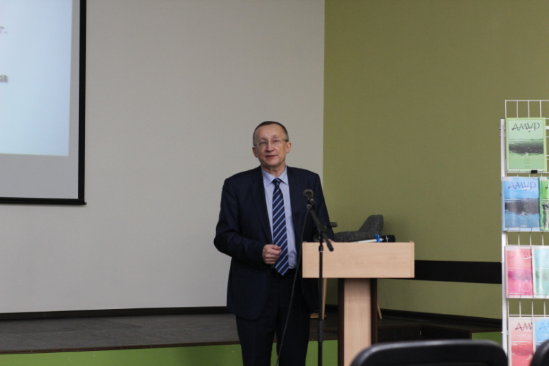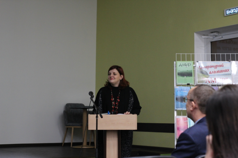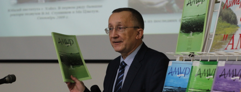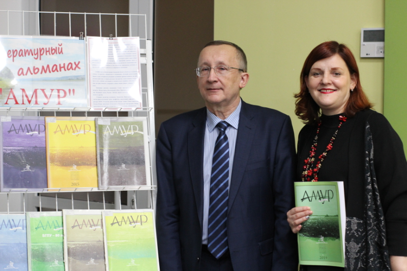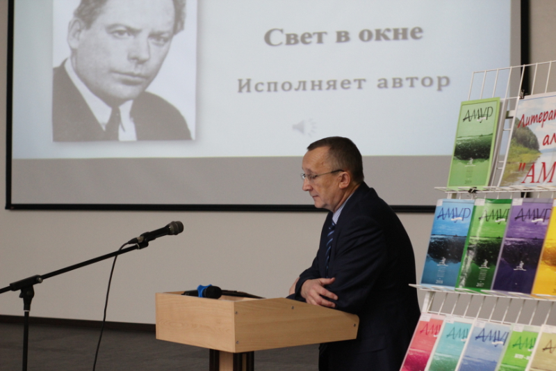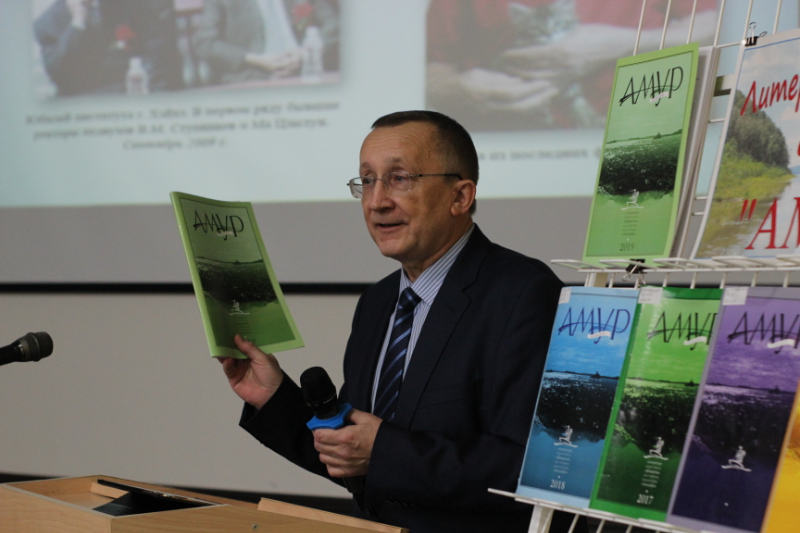 Александр Васильевич Урманов - зав. кафедрой русского языка и литературы БГПУ, главный редактор «Амура», - представил историю одного из самых долгосрочных изданий университета (2002- настоящее время). На экране воспроизводился фоторяд с презентаций прошлых лет, и все годы объединены атмосферой торжества высокой литературы.