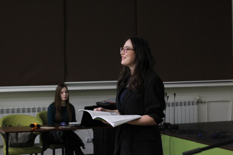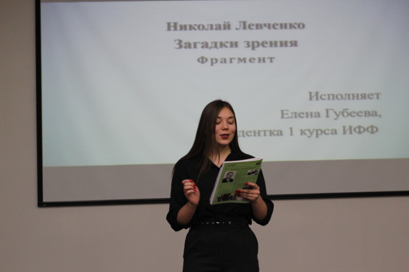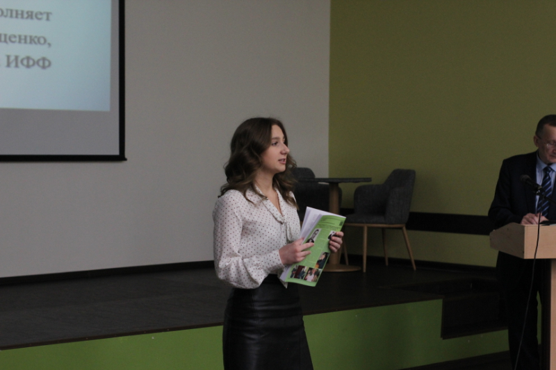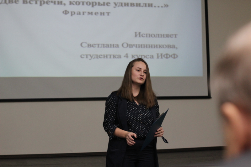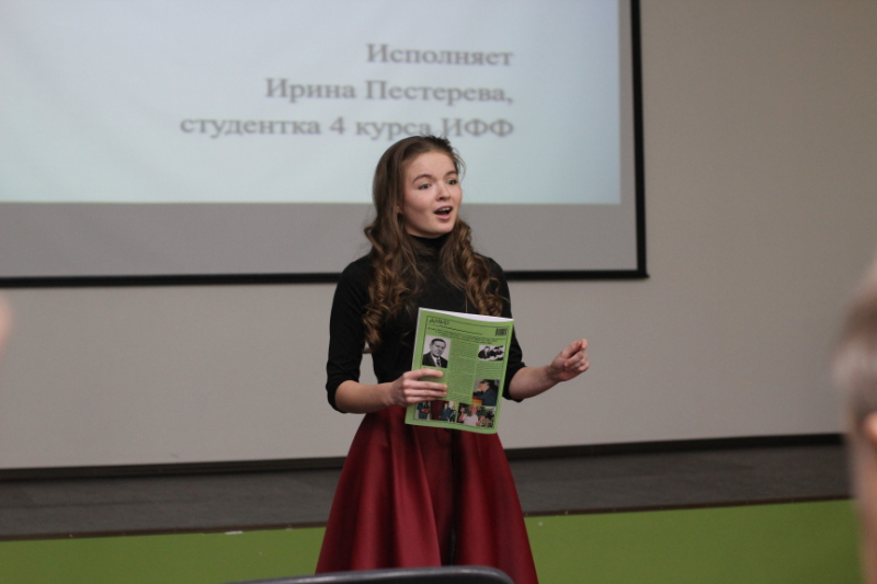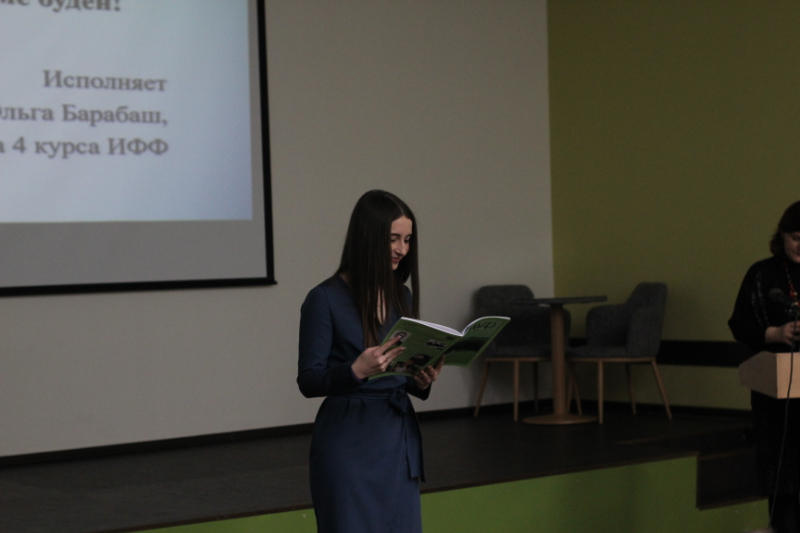 Ольга Барабаш, студентка 4 курса ИФФ, прочитала фрагмент из воспоминаний Владислава Лецика «Раскладушка от Василь Михалыча», а Юлия Шкарабура - памятные записки Игоря Игнатенко «Один из семерых». Можно долго продолжать список воспоминаний о Василии Михайловиче, и все они по своему уникальны, однако в каждом он предстает талантливым созидателем, наставником.
