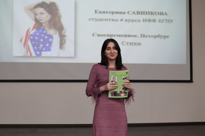 К 75-летию со дня рождения Тамары Шульги, известной БАМовской поэтессы, в альманахе были опубликованы её рассказы. Фрагмент из рассказа «А потом пришёл кот» очень ярко представила студентка 4 курса ИФФ Ирина Пестерева.