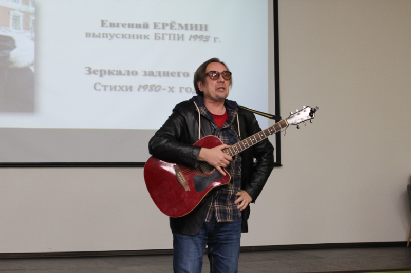 Заключительным спикером презентации стал Евгений Ерёмин, представивший сборник стихов 80-х годов «Зеркало заднего вида» в рубрике альманаха «Из архива». Финальной нотой звучала исполненная Евгением авторская песня «Мы снова вместе, мы снова рядом», строки из которой невероятно точно описывают прошедшее мероприятие.