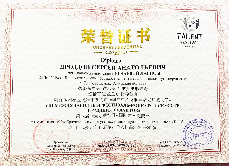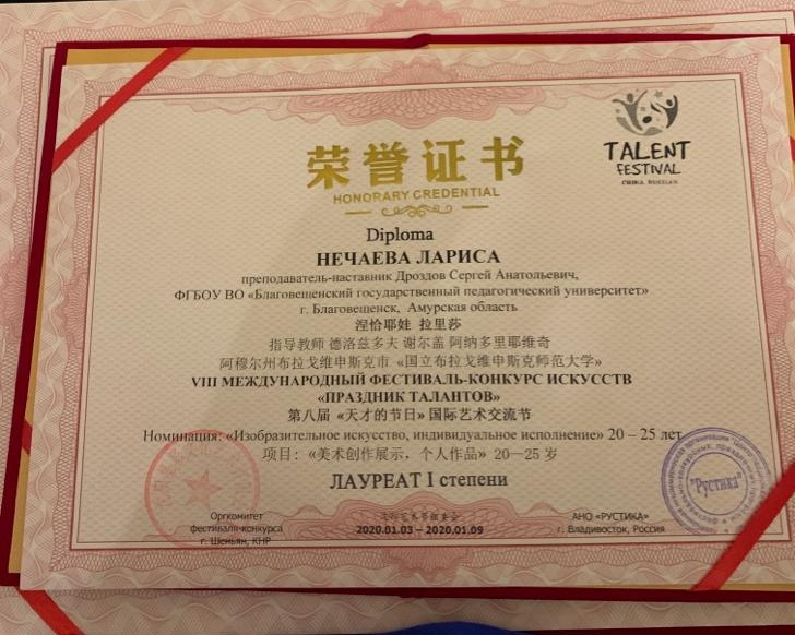 искусства «Праздник талантов» (провинция Ляонин, г. Пекин, КНР, 3.01 – 9.03. 2020).