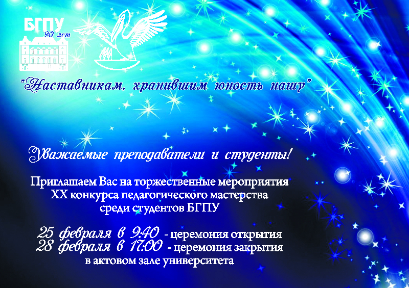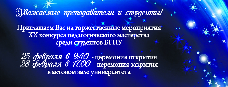 Уважаемые преподаватели и студенты! 25 февраля запускаем профессиональный конкурс педагогического мастерства среди студентов БГПУ. В этом году конкурсу исполняется 20 лет!