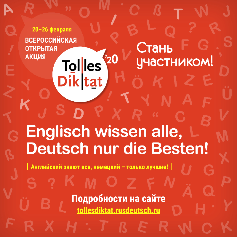 Всероссийская открытая акция «Tolles Diktat» проводится с 20 по 26 февраля 2020 г. с целью популяризации немецкого языка и развития культуры грамотного письма на немецком языке. Акция приурочена к Международному Дню родного языка, который учрежден ЮНЕСКО в 1999 году и отмечается 21 февраля с целью защиты языкового и культурного многообразия. Главными организаторами акции являются Ассоциация общественных объединений «Международный союз немецкой культуры», Областное государственное автономное учреждение культуры «Томский областной Российско-немецкий Дом» и Онлайн-школа немецкого языка Deutsch Online. Акция проводится при поддержке Министерства науки и высшего образования РФ, Министерства просвещения РФ и Федерального агентства по делам национальностей.