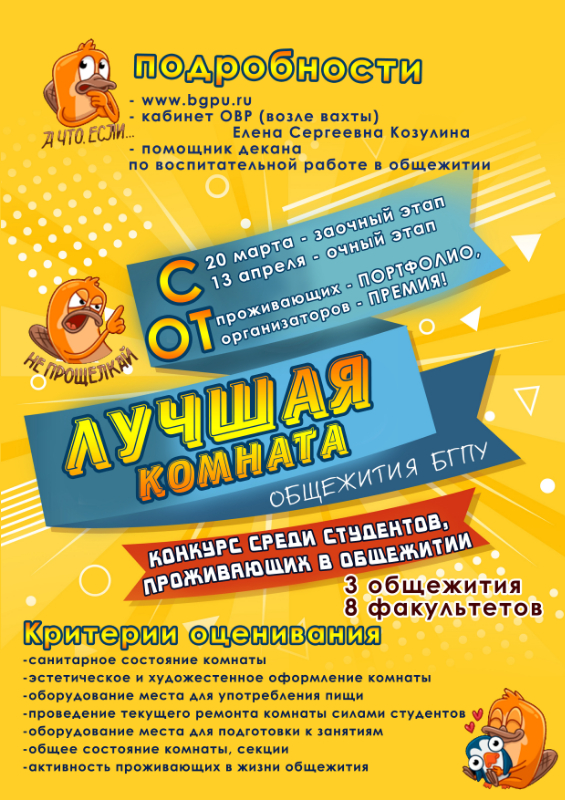 на лучшую комнату в общежитиях ФГБОУ ВО «БГПУ».