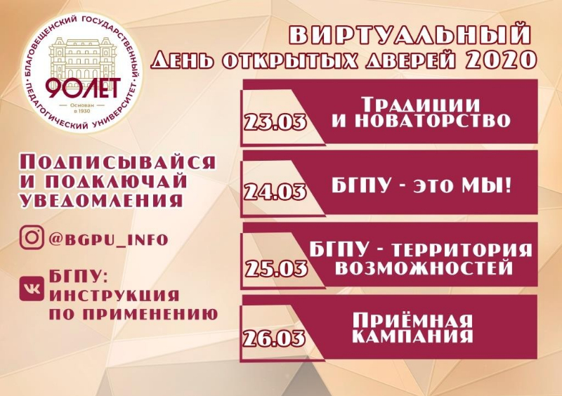 БГПУ проводит виртуальный ДЕНЬ ОТКРЫТЫХ ДВЕРЕЙ.