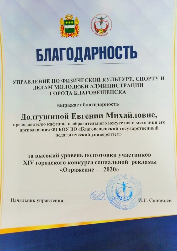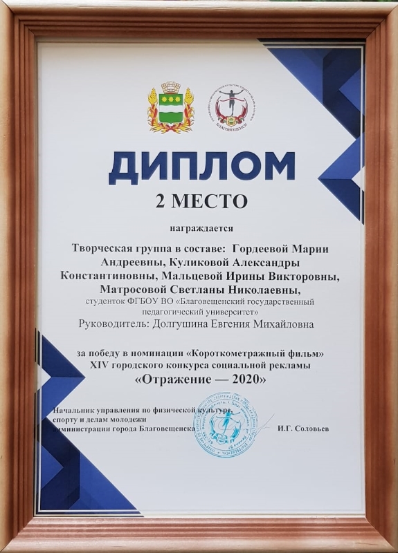 Управление по физической культуре, спорту и делам молодежи администрации города Благовещенска награждена творческая группа