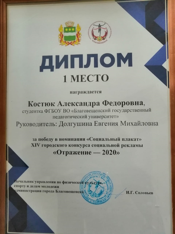 Костюк Александра 3курса - Диплом 1 место