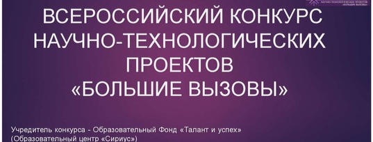конкурса научно-технологических проектов «Большие вызовы». Среди