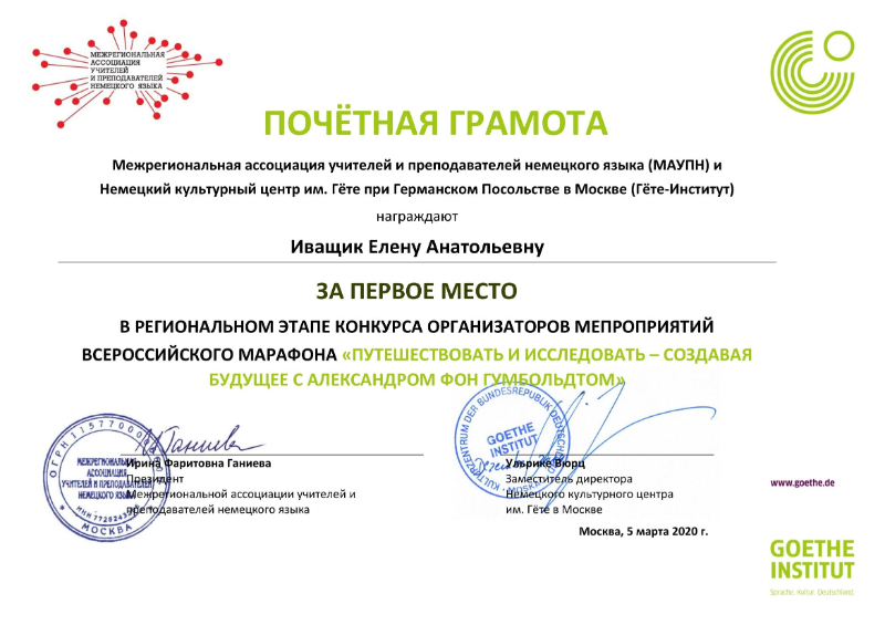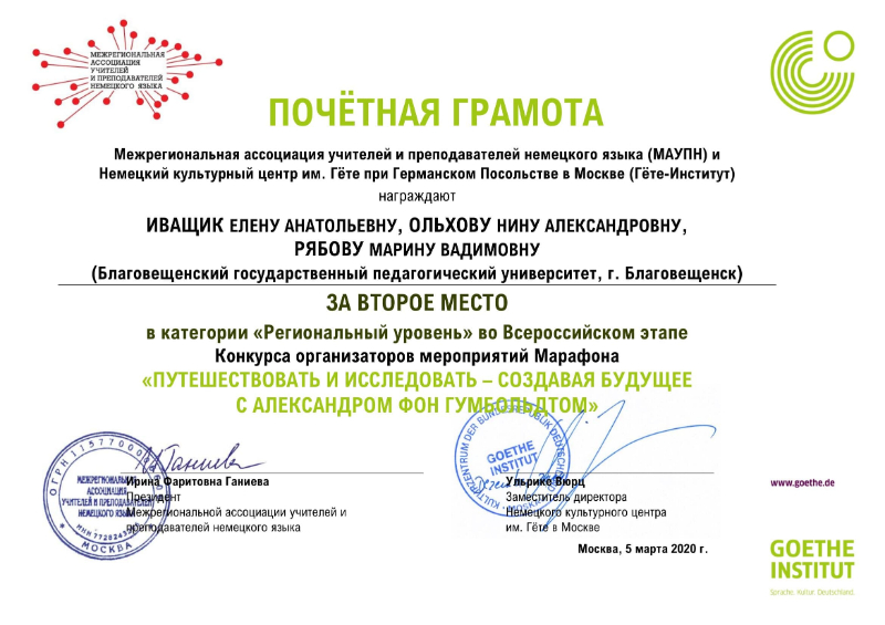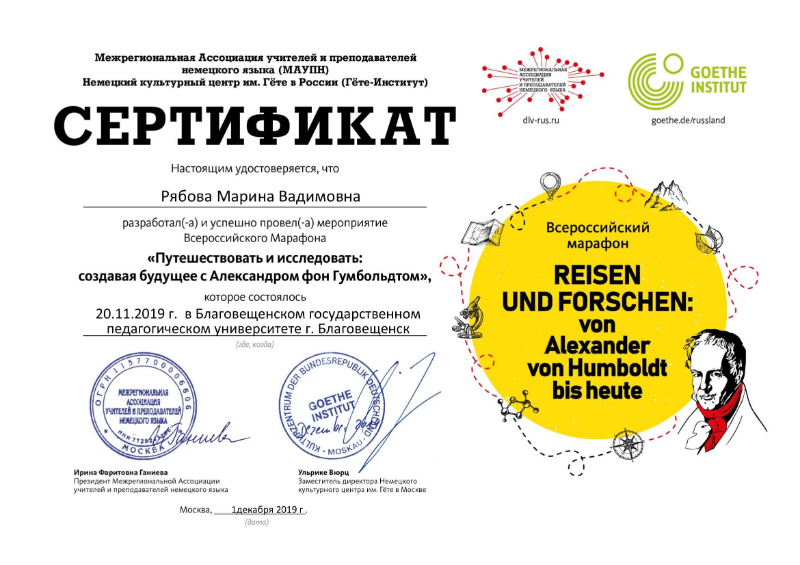 («Reisen und Forschen: von Alexander Humboldt bis heute») (подробнее: http://dlv-rus.ru/news/podvedeny_itogi_vserossijskogo_marafona/2020-03-14-151).
