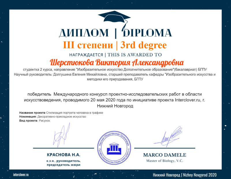 3 место – Мартыненко Варвара, с работой «Чернобыль - город призрак» студентка 2 курса ИПФ, кафедра изобразительного искусства и методики