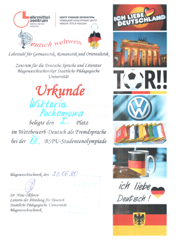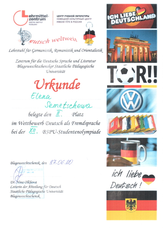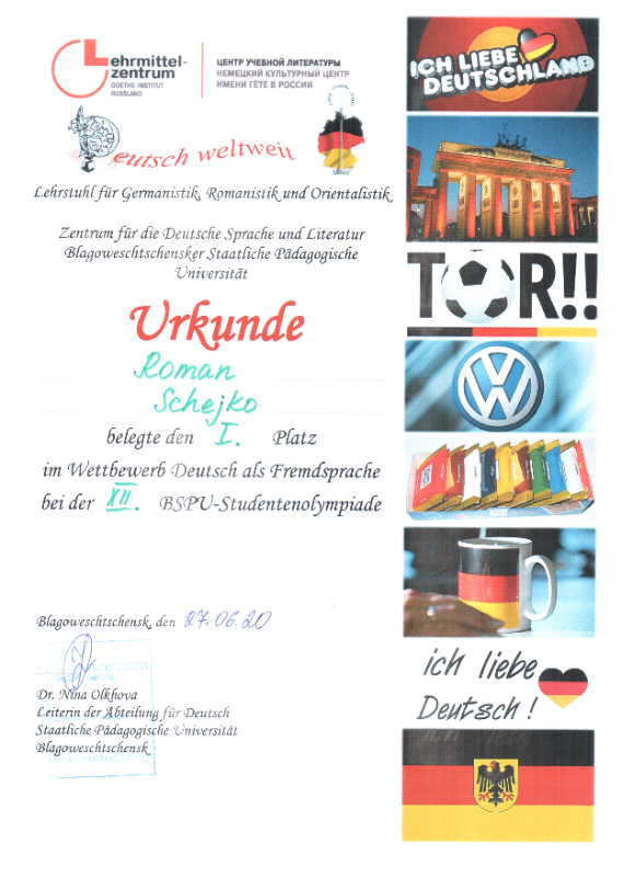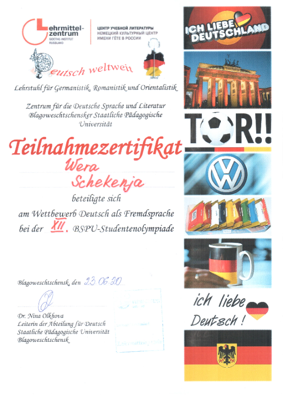 («Lesen»), Сещерка Алексей («Landeskunde»).