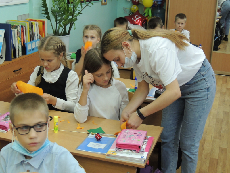 МБОУ «Школа №10 г. Благовещенска». Студенты вместе с детьми из гофрированной