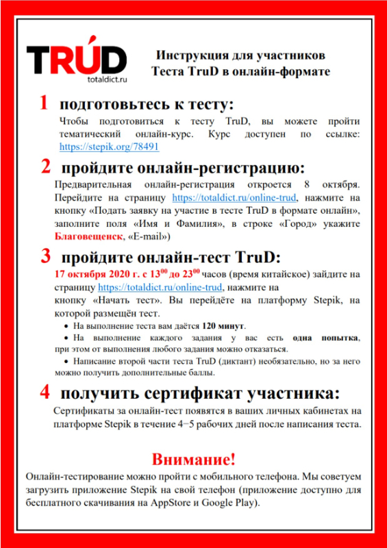 В этом году тест «TRUD» состоится 17 октября.