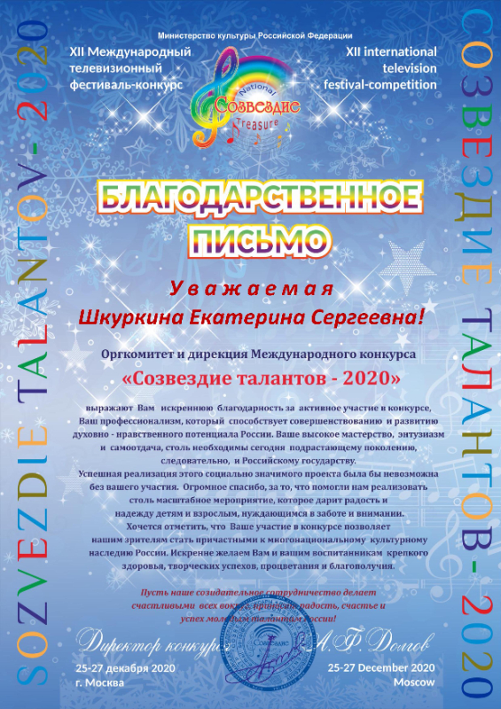Международном телевизионном IT-ONLINE конкурсе «Созвездие талантов – 2020».
