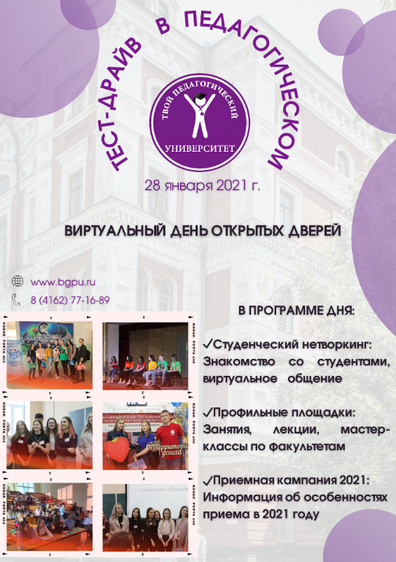 университет приглашает старшеклассников 28 января 2021 г. на виртуальный День
