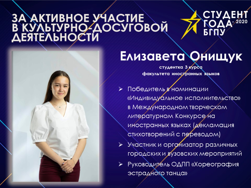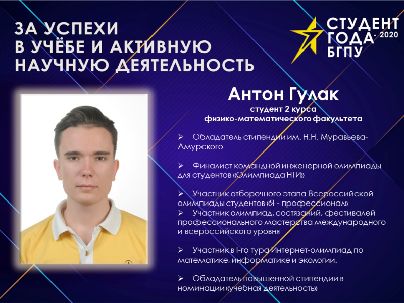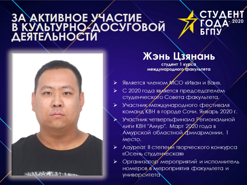 Для участия в конкурсе "Студент года - 2020"