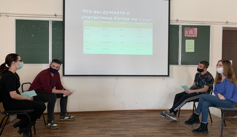 26 января студенты 5 курса историко-филологического факультета провели заседание Дискуссионного клуба БГПУ на тему: «COVID - 19 и социально-экономические и политические последствия». Работа была организована при помощи интерактивных форм. Участники поделились на группы и каждый представлял мнение команды. Во время дискуссии студенты обсудили наиболее острые и важные вопросы, касающиеся противоэпидемиологических мер, мировой рецессии, дистанционного обучения и перспектив мирового развития после пандемии.