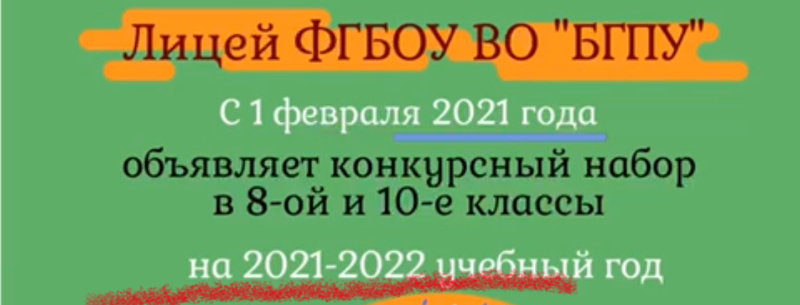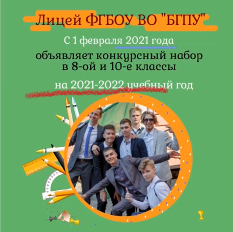 Лицей БГПУ объявляет конкурсный набор в 8 и 10-е классы на 2021-2022 уч.год.
