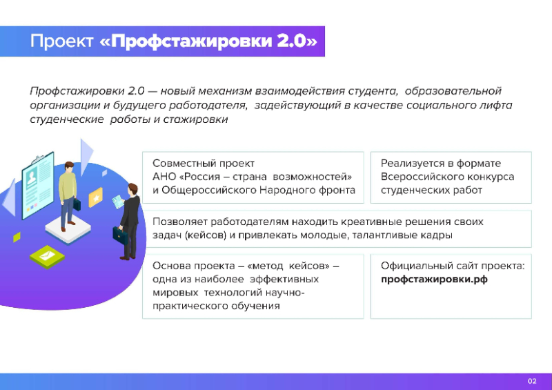 Общероссийский народный фронт совместно с Министерством науки и высшего образования Российской Федерации продолжают реализацию проекта «Профстажировки 2.0».