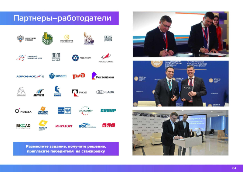 Новостная лентаСтарт четвертого сезона всероссийского конкурса студенческих работ «Профстажировки 2.0»4 Февраля 2021Общероссийский народный фронт совместно с Министерством науки и высшего образования Российской Федерации продолжают реализацию проекта «Профстажировки 2.0». Любой обучающийся сможет с 1 февраля до 30 апреля 2021 года дистанционно выбрать на платформе профстажировки.рф один из кейсов и посвятить его решению тему своей студенческой работы. При этом имеется возможность отправить заявку одновременно на 3 кейса разных работодателей. Авторов лучших решений работодатели пригласят на практику или стажировку, в том числе в дистанционном формате. Научные руководители студентов-победителей будут отмечены благодарственными письмами. Контактное лицо по вопросам участия в проекте: Макарченко Маргарита Алексеевна, тел.: +7 (916) 216-45-14, эл. почта: m.makarchenko@rsv.ru. Другие новости |