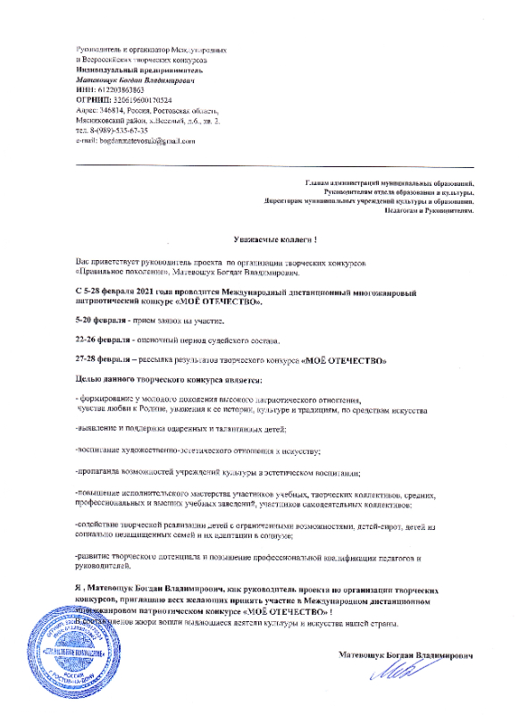 многожанровом патриотическом конкурсе «МОЁ ОТЕЧЕСТВО» !