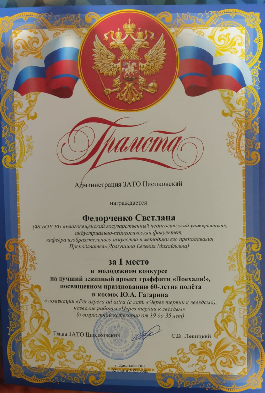 возрастной категории от 19-35 лет, номинация: Per aspera ad astra (с лат.