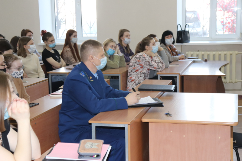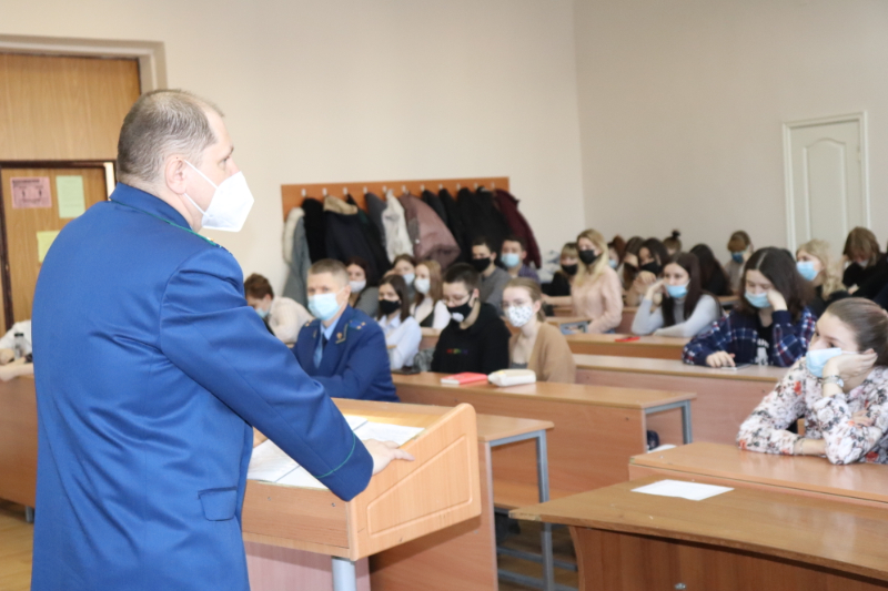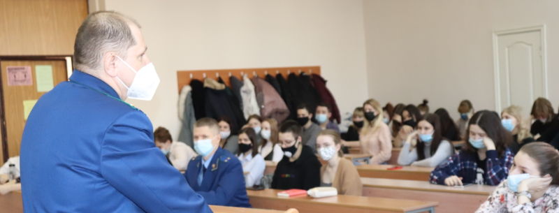 В качестве лекторов для студентов выступили старший помощник прокурора области Скобликов Валерий Александрович и прокурор отдела статистики и защиты информации Залесов Роман Иванович.