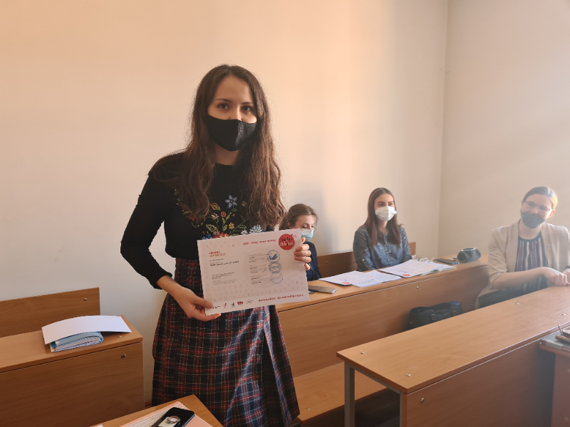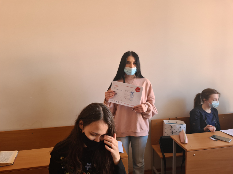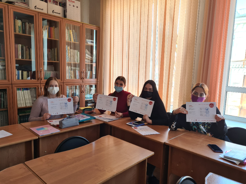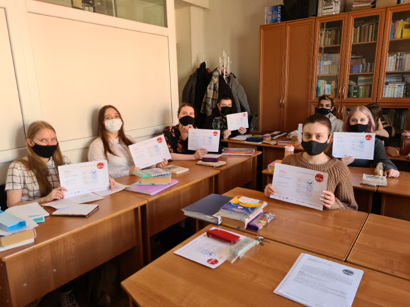 4 и 5 курсов ФИЯ, которые под диктовку преподавателей немецкого языка написали диктант