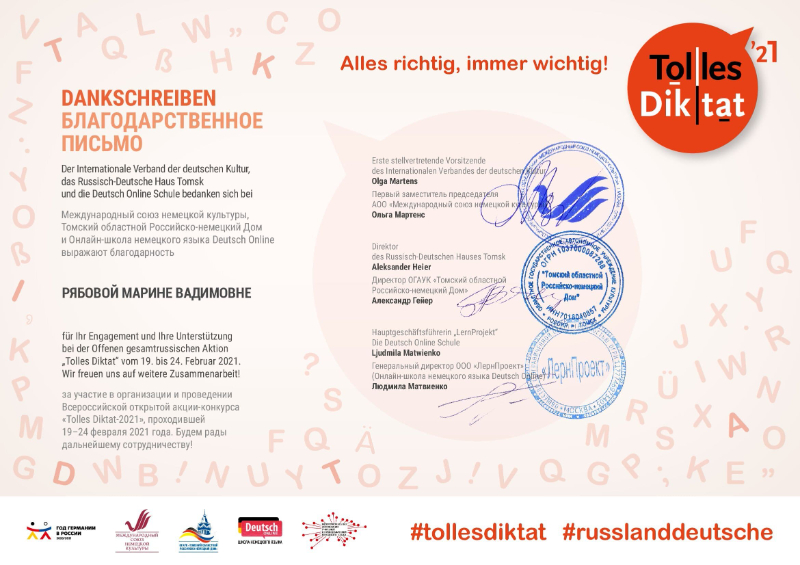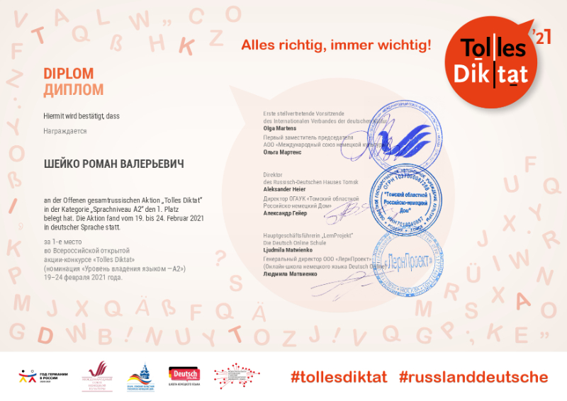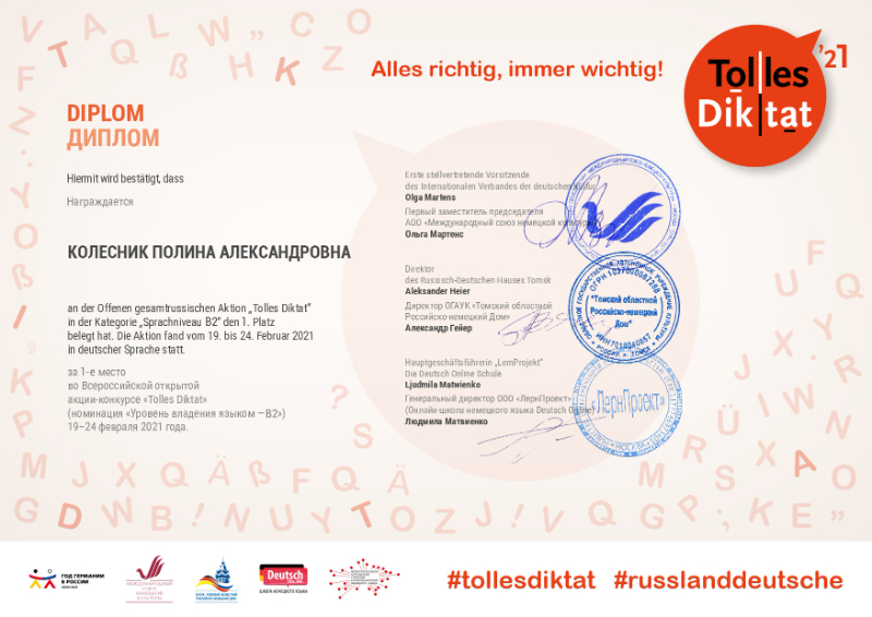 иностранных языков принял участие во Всероссийской открытой акции-конкурсе по немецкому языку «Tolles