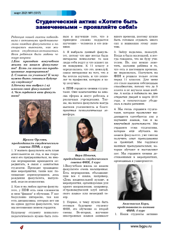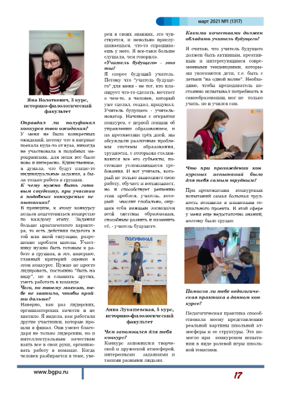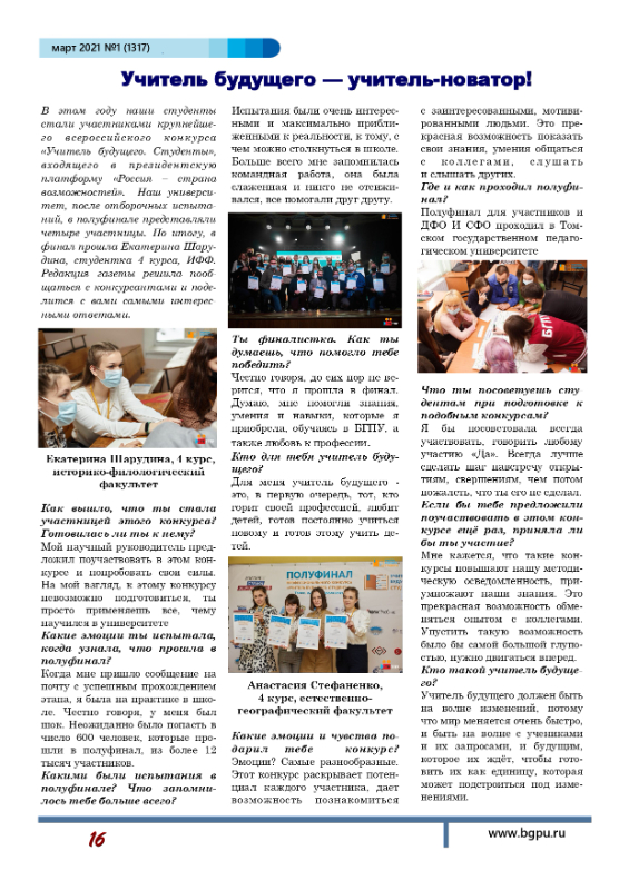 Номер посвящен актуальной информации о поступлении, также интересным новостным событиям и размышлениям на тему "Каким должен быть "Учитель будущего" и студент-активист"?