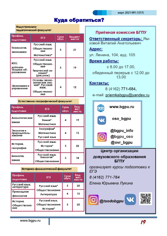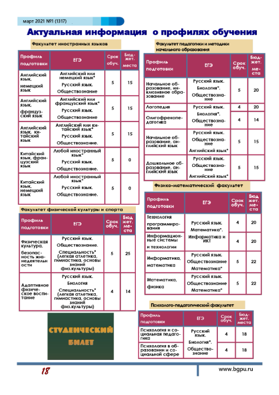"За педагогические кадры" спецвыпуск для абитуриентов.
