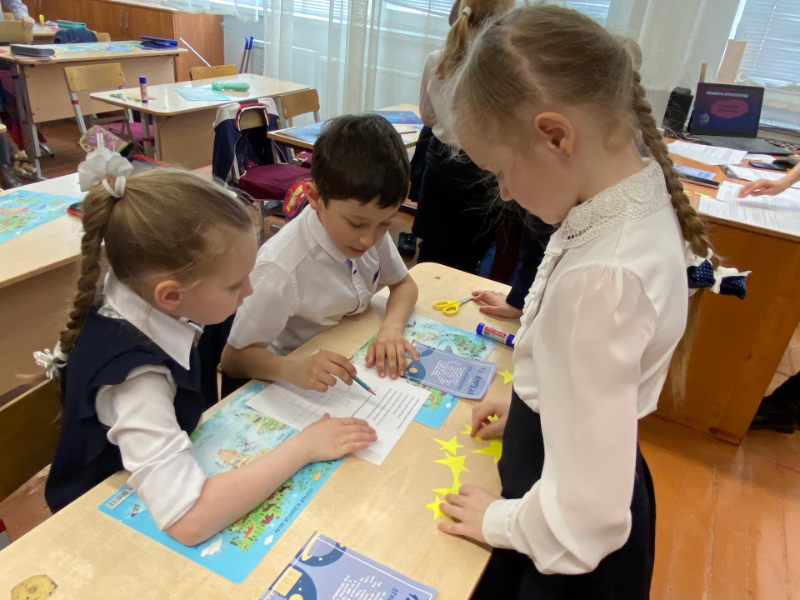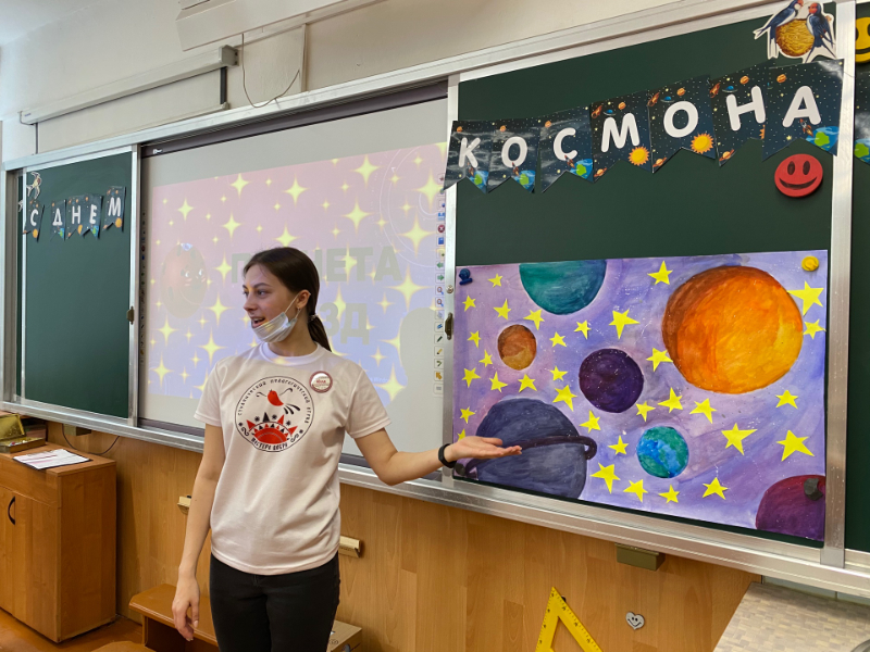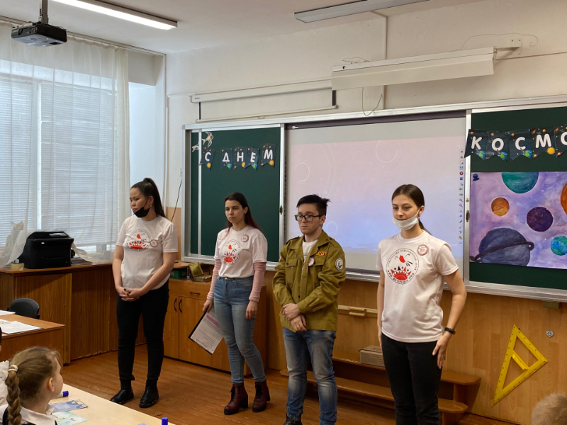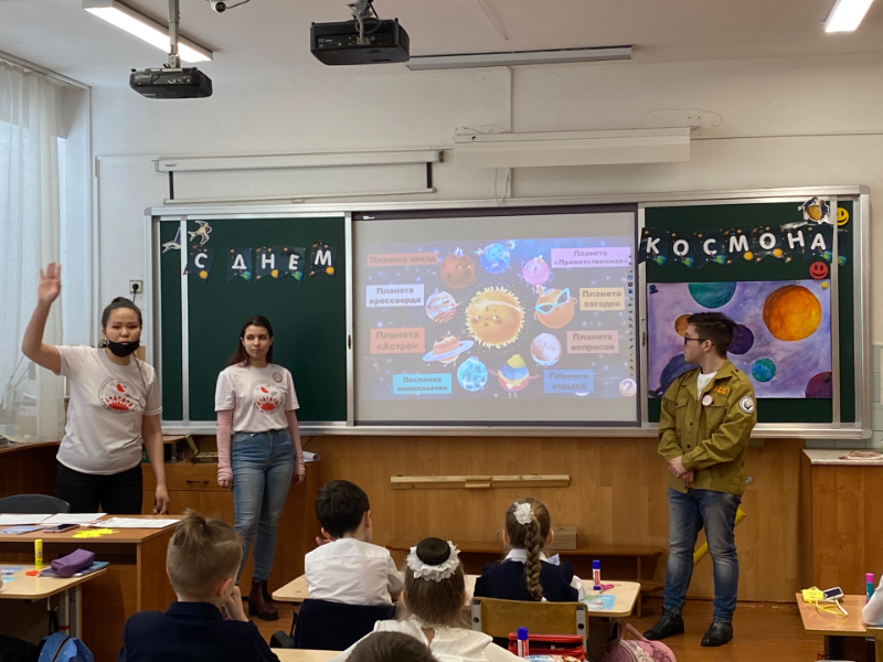 12 апреля студенты педагогического отряда «Мастера добра» посетили МАОУ «Школа №14. г. Благовещенск». Бойцы отряда приготовили для учащихся 3 класса игру «Путешествие по планетам» в честь праздника День космонавтики. В ходе познавательной игры класс был поделен на три (группы) экспедиции, которые проходили этапы и получали за правильные ответы звездочки. Ребята отгадывали загадки, решали ребусы, узнавали новые факты о космосе и не забыли упомянуть первых космонавтов. Каждая экспедиция заработала звезды, и в конце ребята приклеили их на галактику, оставив пожелания друг другу.