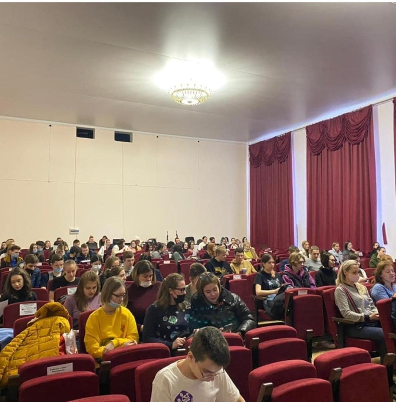 постановку посетили в актовом зале студенты-первокурсники следующих