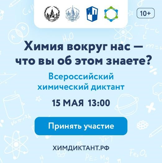 Расскажите о Химическом диктанте друзьям, коллегам и ученикам – мы ждём всех, кто интересуется наукой и твёрдо знает, что химия повсюду!