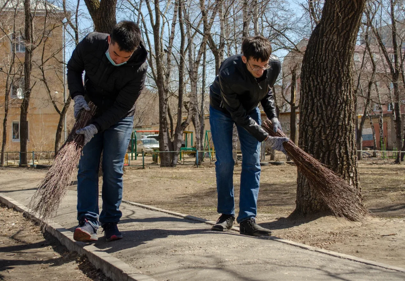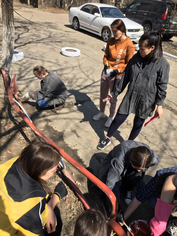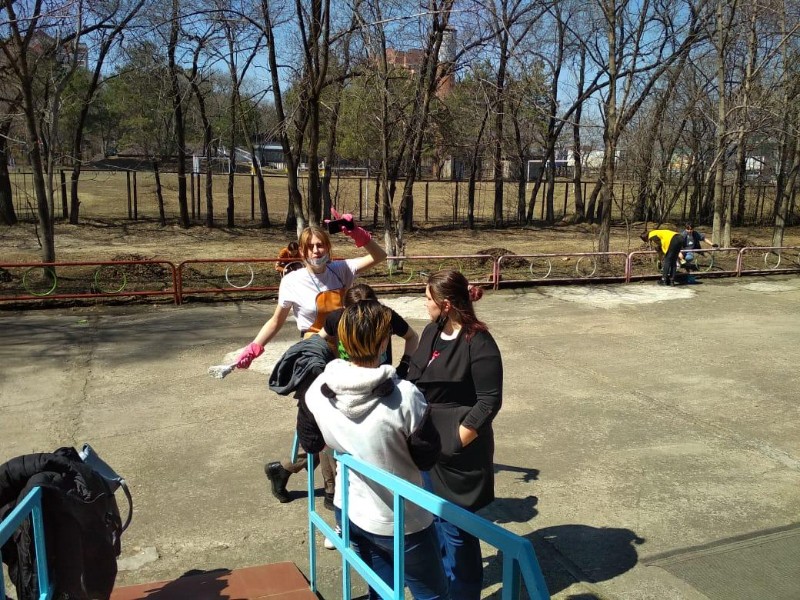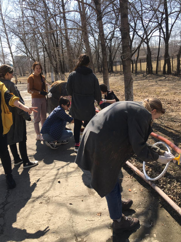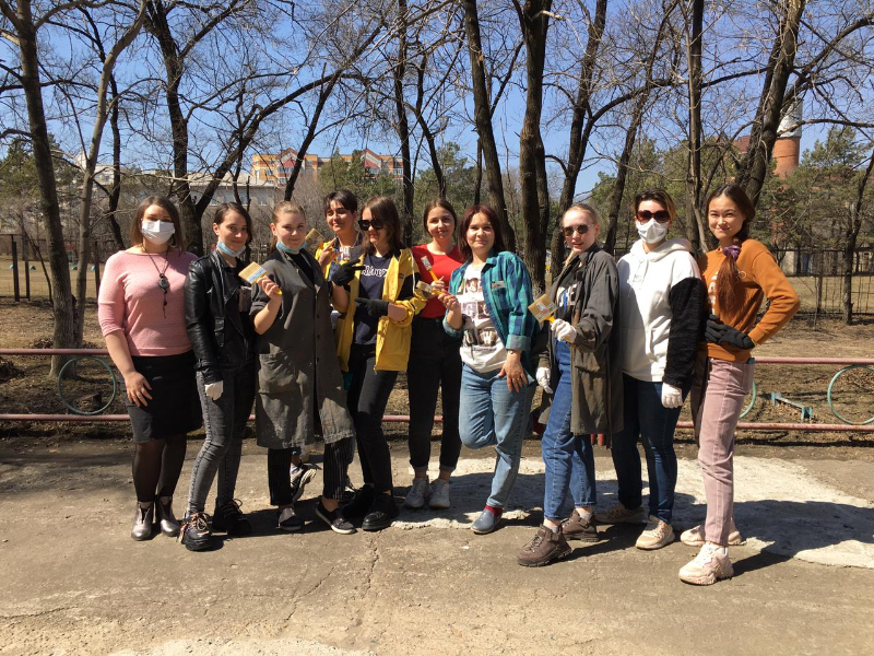23 апреля студенты факультета иностранных языков групп 101ан, 102аф, 103ак, 104ак, 203ак и 204ак привели в порядок те участки территории города, которые им достались согласно традиционному распределению.