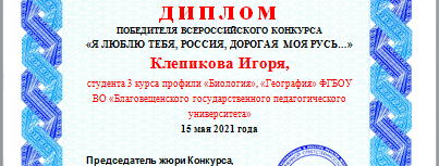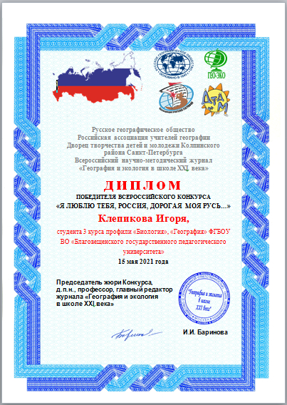 заняла работа студента 3 курса профиль «Биология», профиль «География» Клепикова