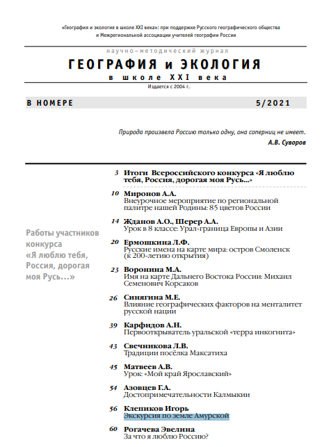 опубликована в научно-методическом журнале «География и экология в школе XXI