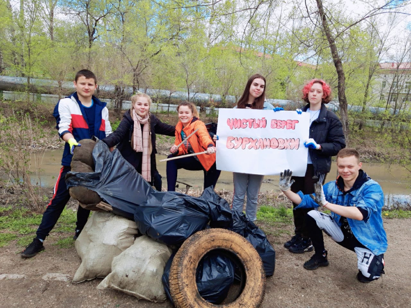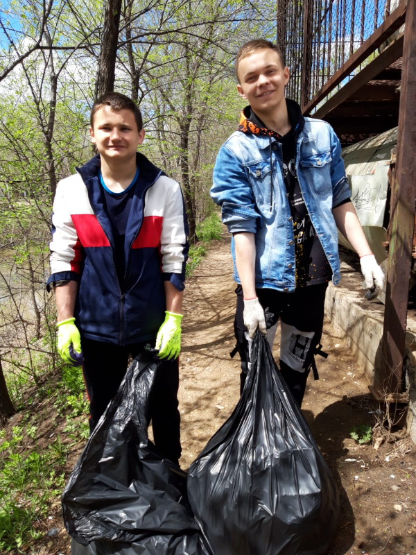 А 15 мая студенты историко-филологического факультета группы 2А совместно со студентами индустриально-педагогического группы 1ТЭ факультета очистили от мусора берега реки Бурхановка.