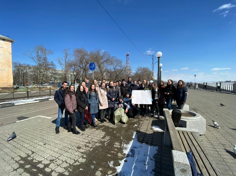 13 апреля студенты историко-филологического факультета группы 2Г и 2Д под руководством доцента кафедры химии к.б.н. С. И. Лаврентьевой в рамках акции "Чистые берега Амура" очистили берег реки от мусора.