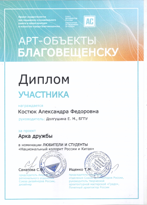 России подвело итоги конкурса эскизных проектов «Арт-объекты – Благовещенску». Торжественное награждение победителей