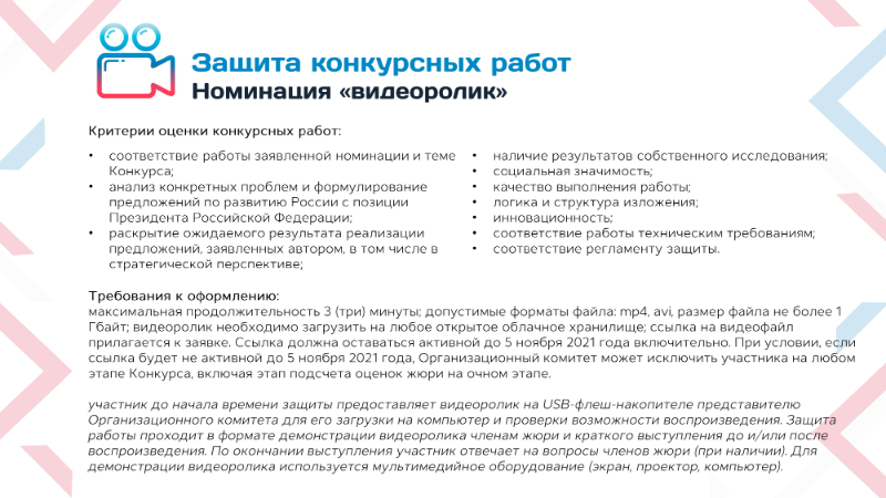 - Видеоролик на тему: «Моя предвыборная программа» (для участников от 15 до 35 лет).