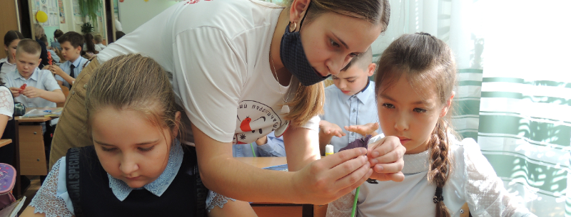 Учащиеся каждый раз с радостью встречают студентов и с интересом работают на уроке.